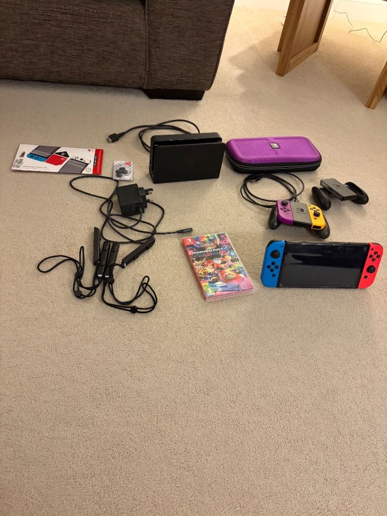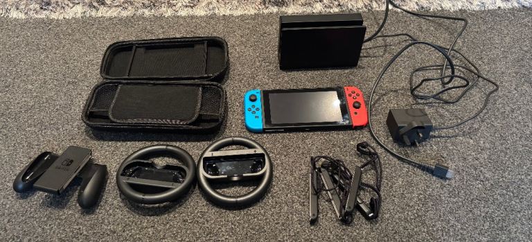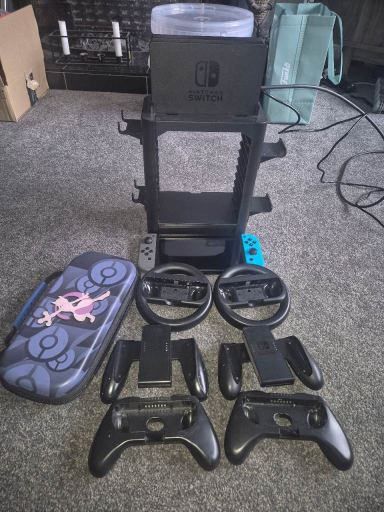 Standard Switch comes with additional assessories, stands to hold docking station, up to 10 games, and joy con holders, case to carry switch in. Pick up only