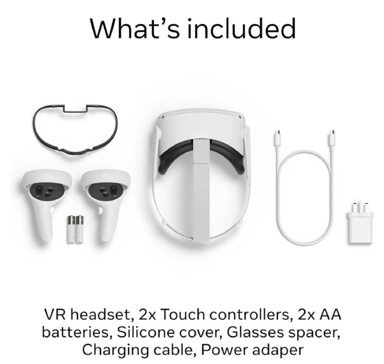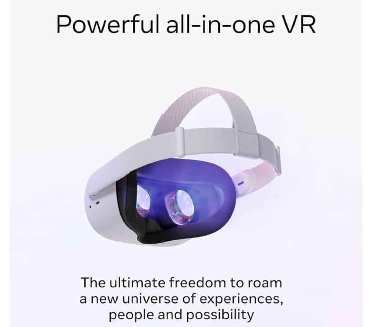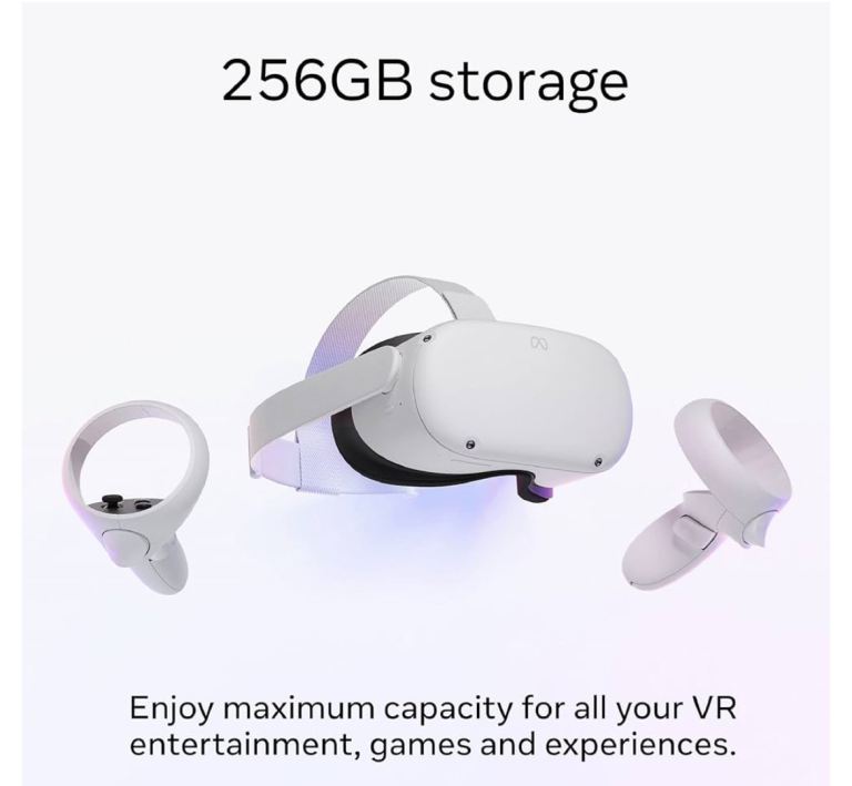 META Quest 2 VR Gaming Headset - 256 GB complete with all accessories plus purchased head strap and 6 mtr charging cable.