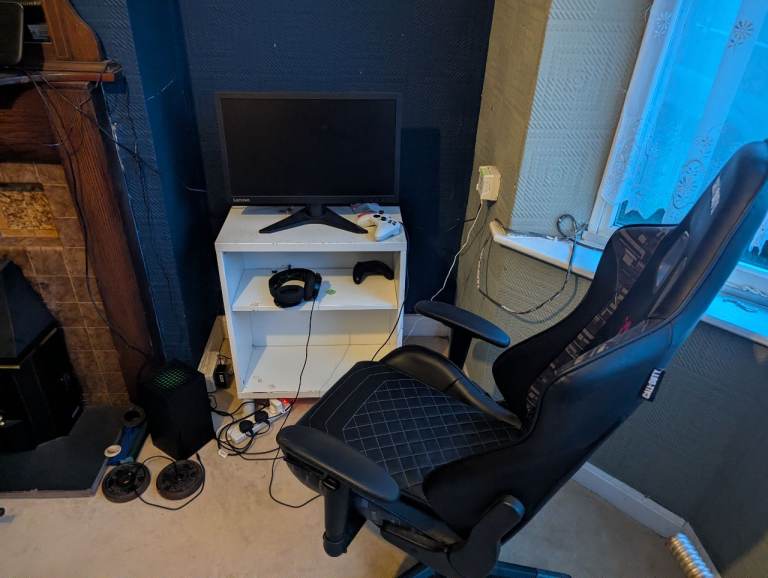 Xbox x and monitor and gaming chair