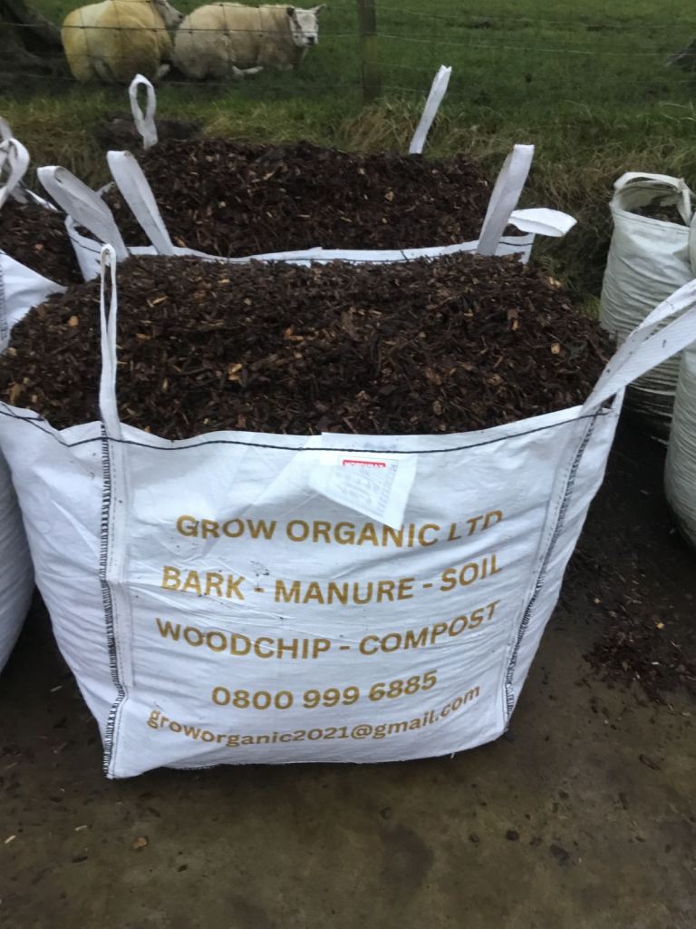 Woodchip decorative mulch,chipped from forestry logs no pallets,plastic, nails or waste materials,sold in 850 ltr bulk bags tax included in price, delivery available Kilmarnock and surrounding area