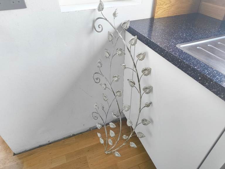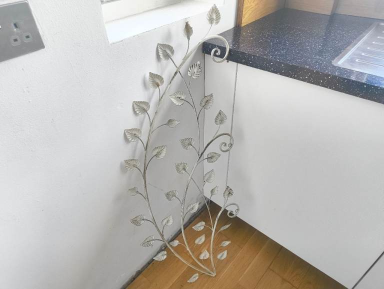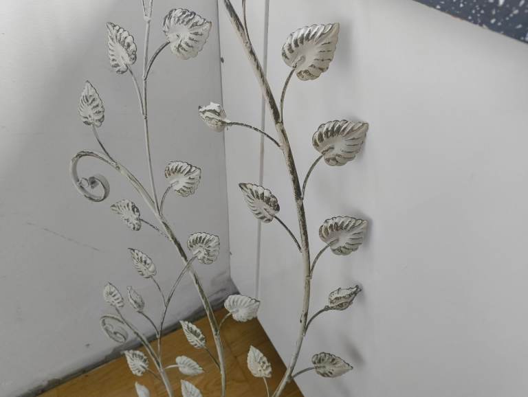 A metal trellis in a branch and leaf design, great as an outside ornament. Used in okay condition, visible discolouration and wear.