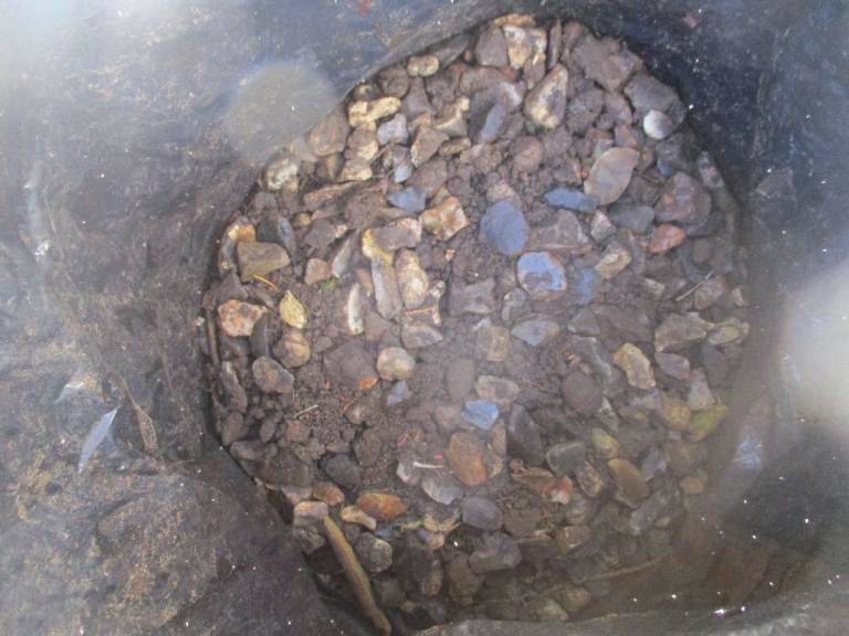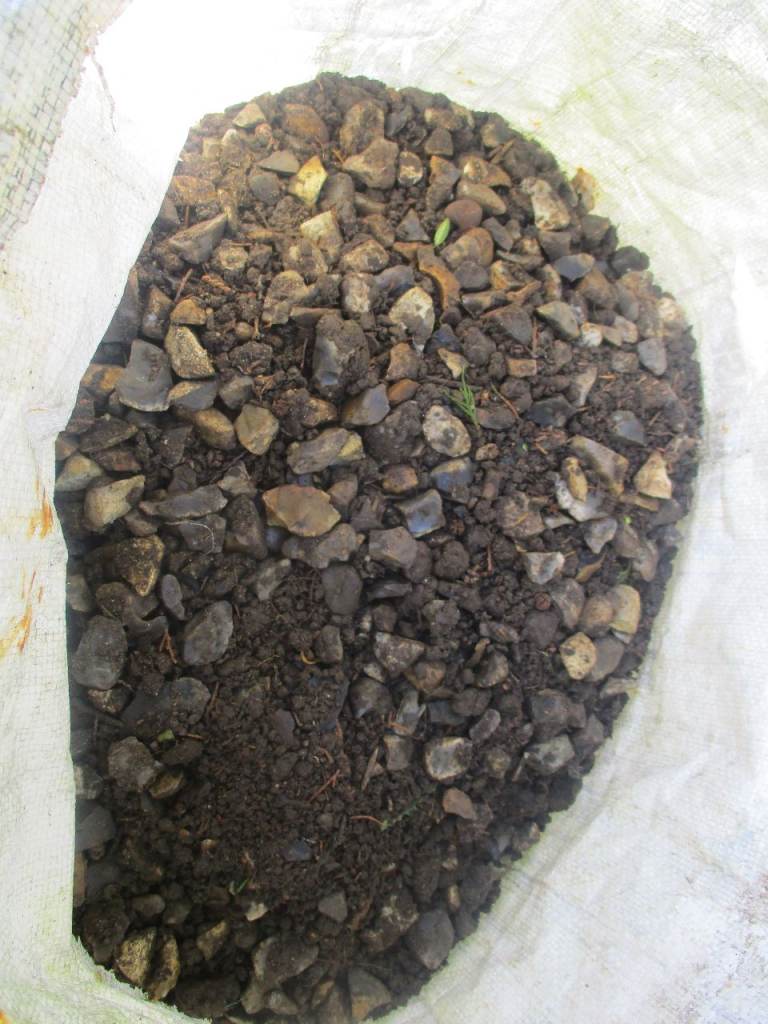 more gravel than soil the two bags with bricks on white bag 2ft high free to take away.