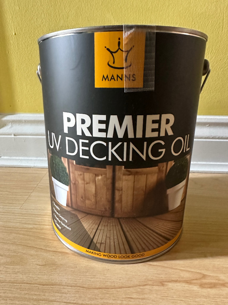 Posting for 8+ yearsManns Premier UV Decking Oil Clear 5L