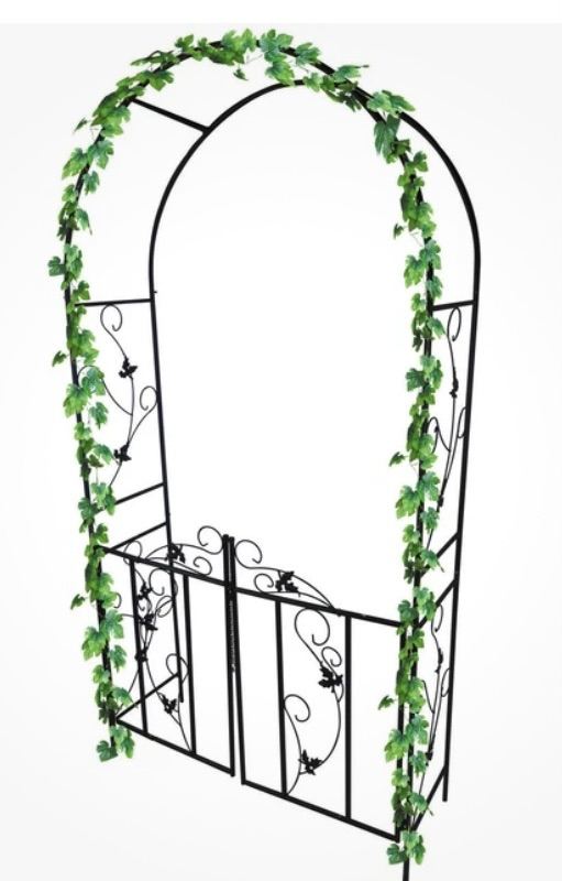 * Ideal for making a focal point in your garden using climbers, unlike the basic arches this has a decorative gate. Made from black coated tubular steel to for strength and to sustain the new look throughout different weather conditions
