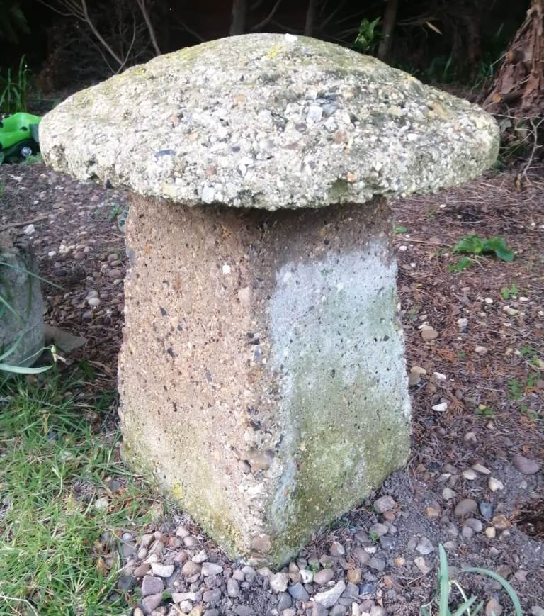 Old Saddlestone with natural weathered patina. Approx 48cm tall 44cm wide