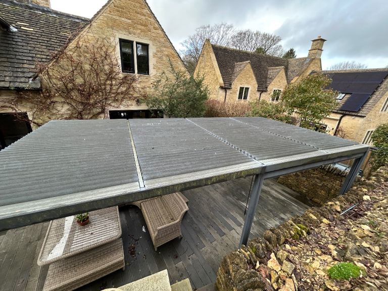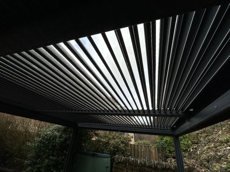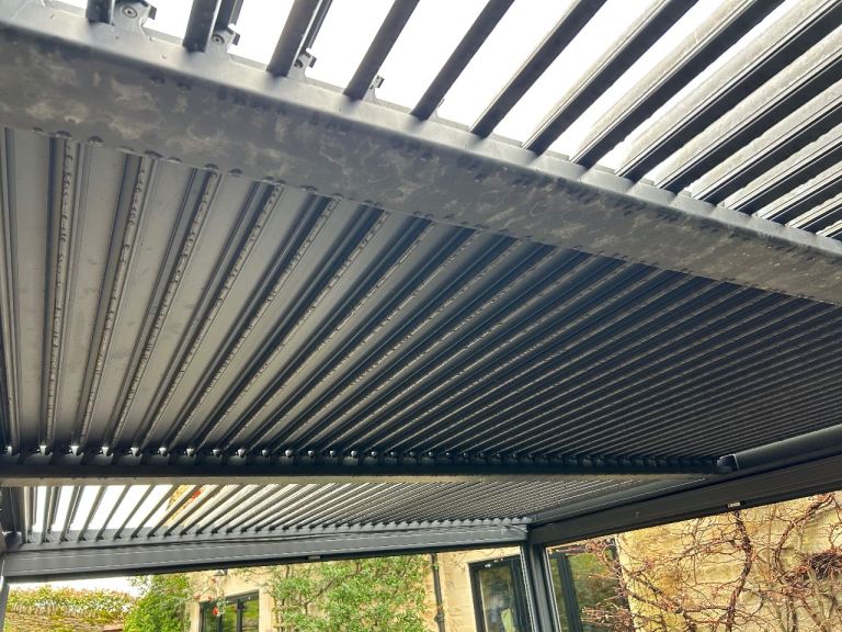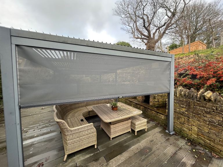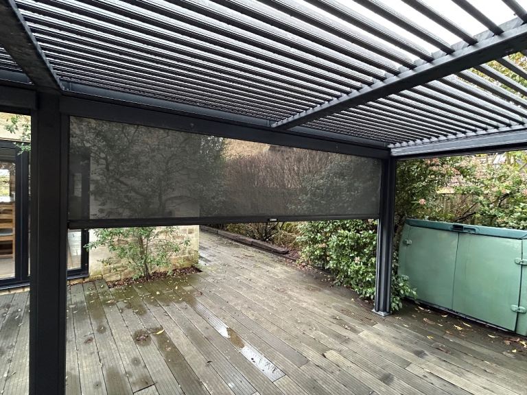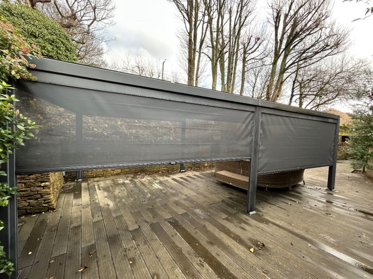 Dismantled aluminium all weather pergola with retractable roof and full set of screens.