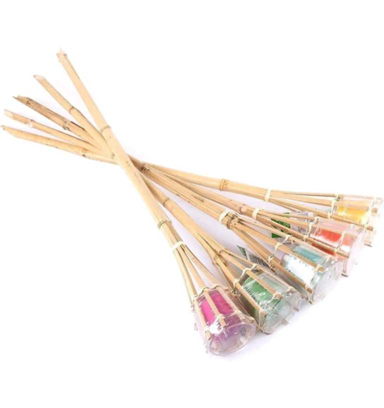 Instructions for Use: simply stake the bamboo sharp end into soft ground (grass, soil, or sand) until stable. Light the wick and enjoy the ambience.