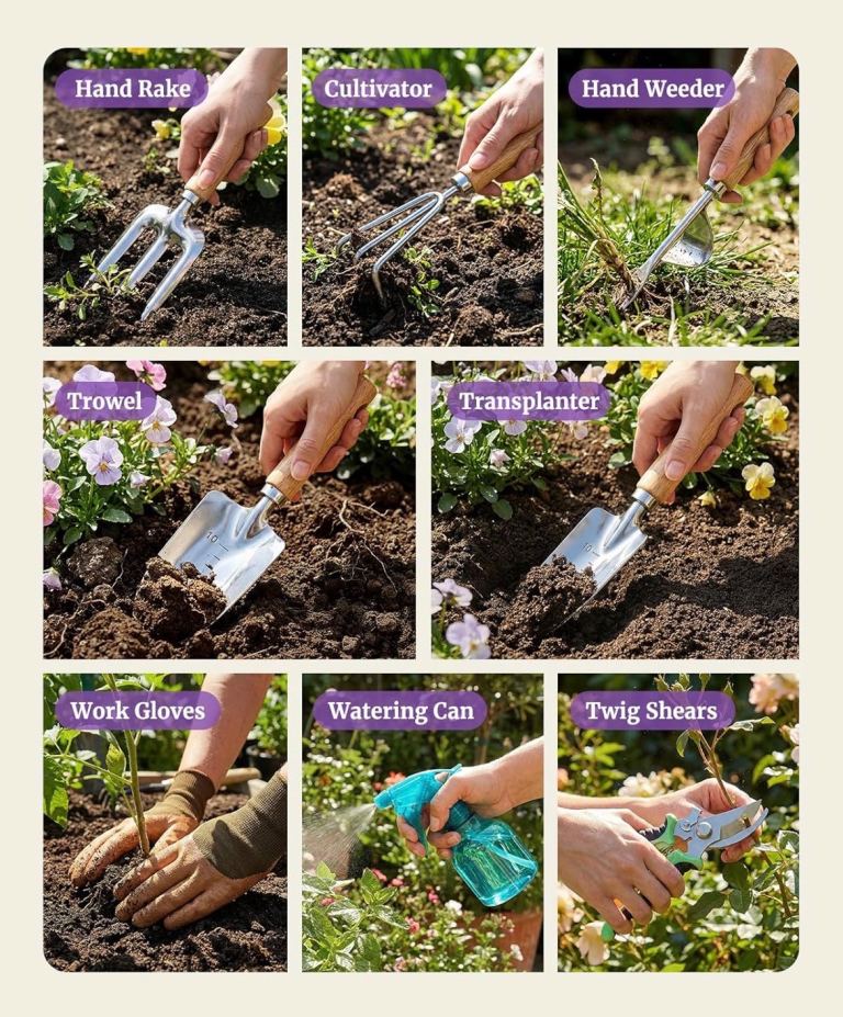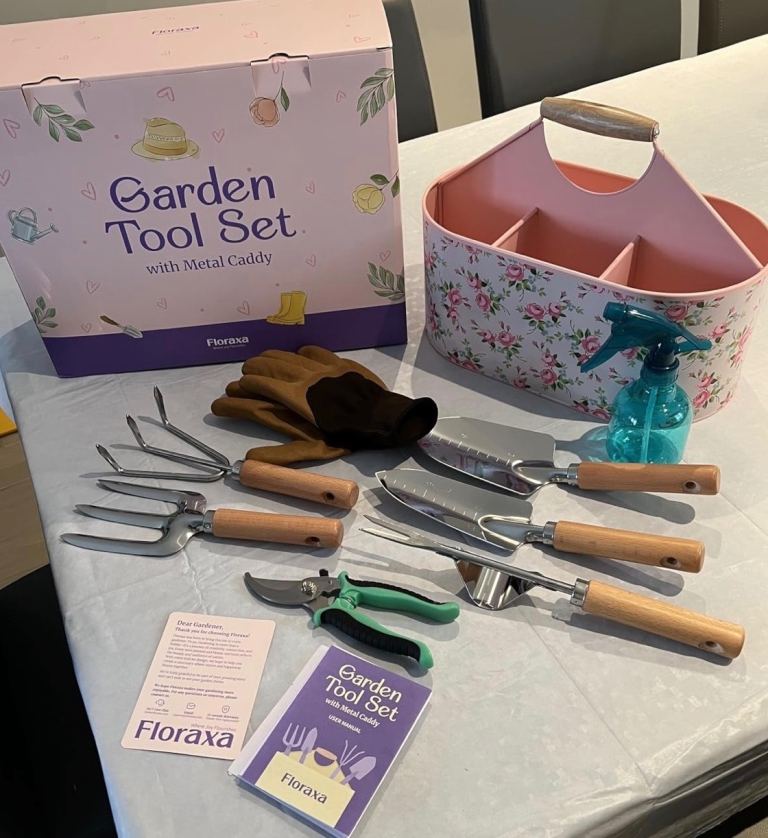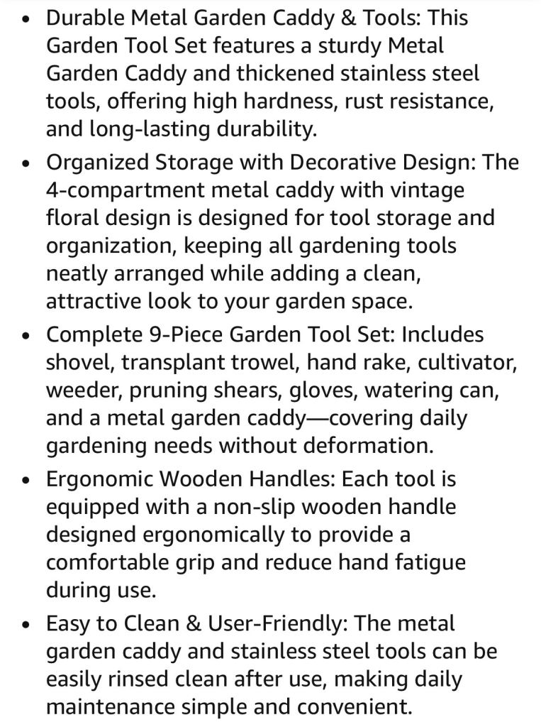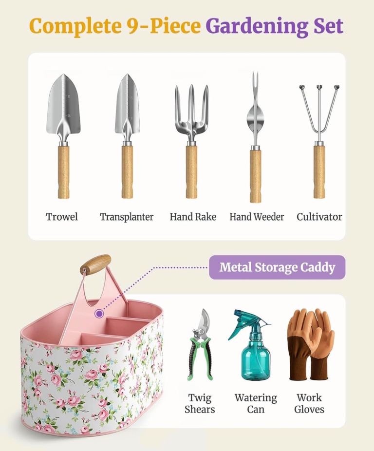 🆕 9 piece garden tool set and metal caddy