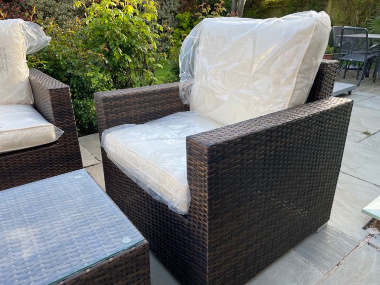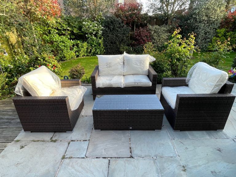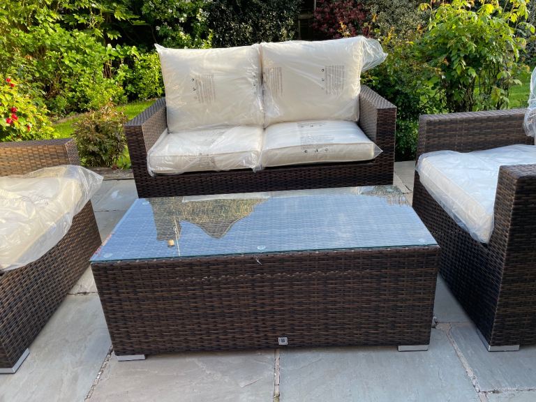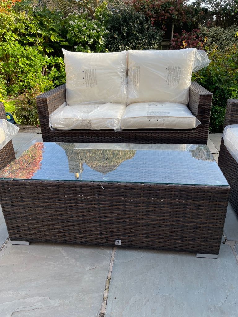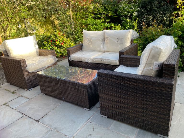 Posting for 9+ yearsBrand new. Giardino 4 Seater Rattan Patio Sofa Set with Coffee Table