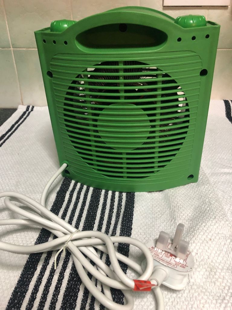 Specifications: It features two heat settings (1000W and 2000W).