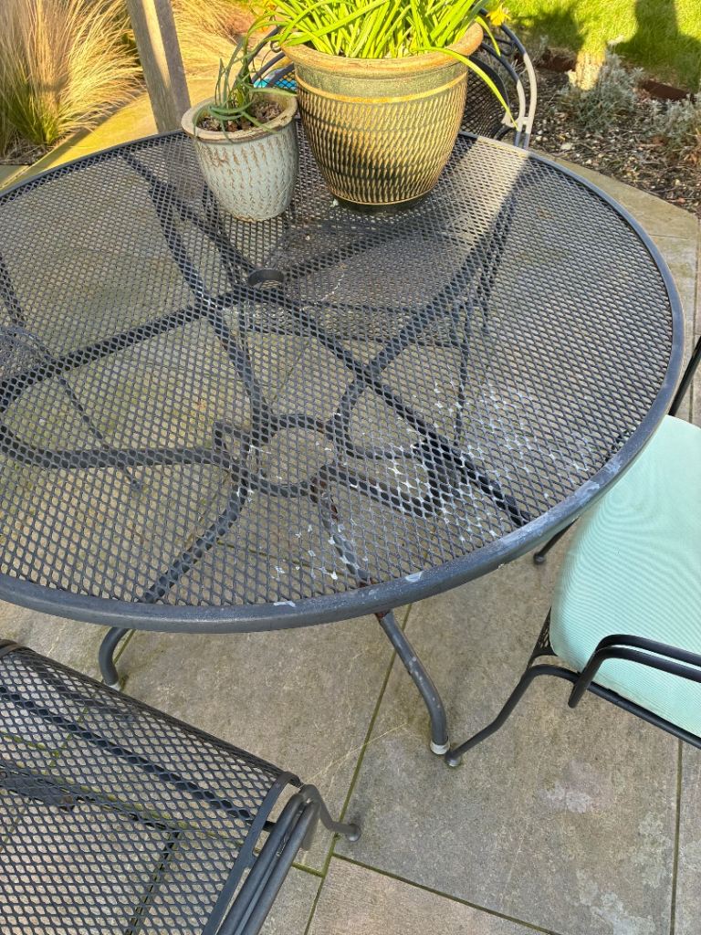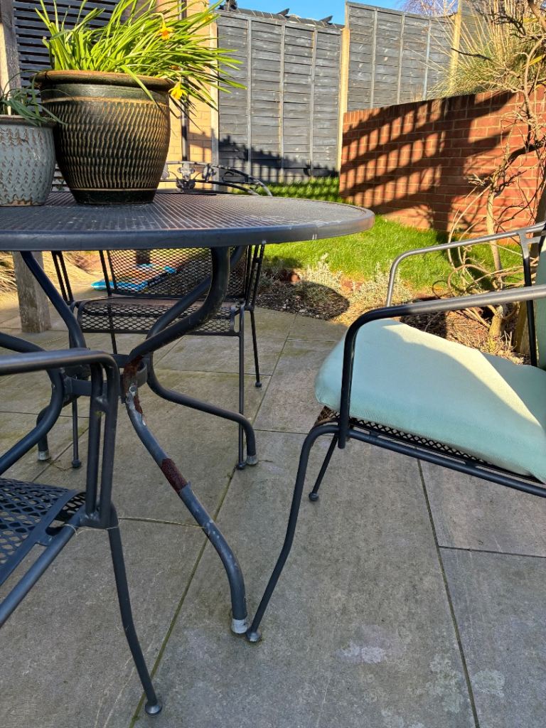 Posting for 12+ yearsKettler metal garden table and chairs