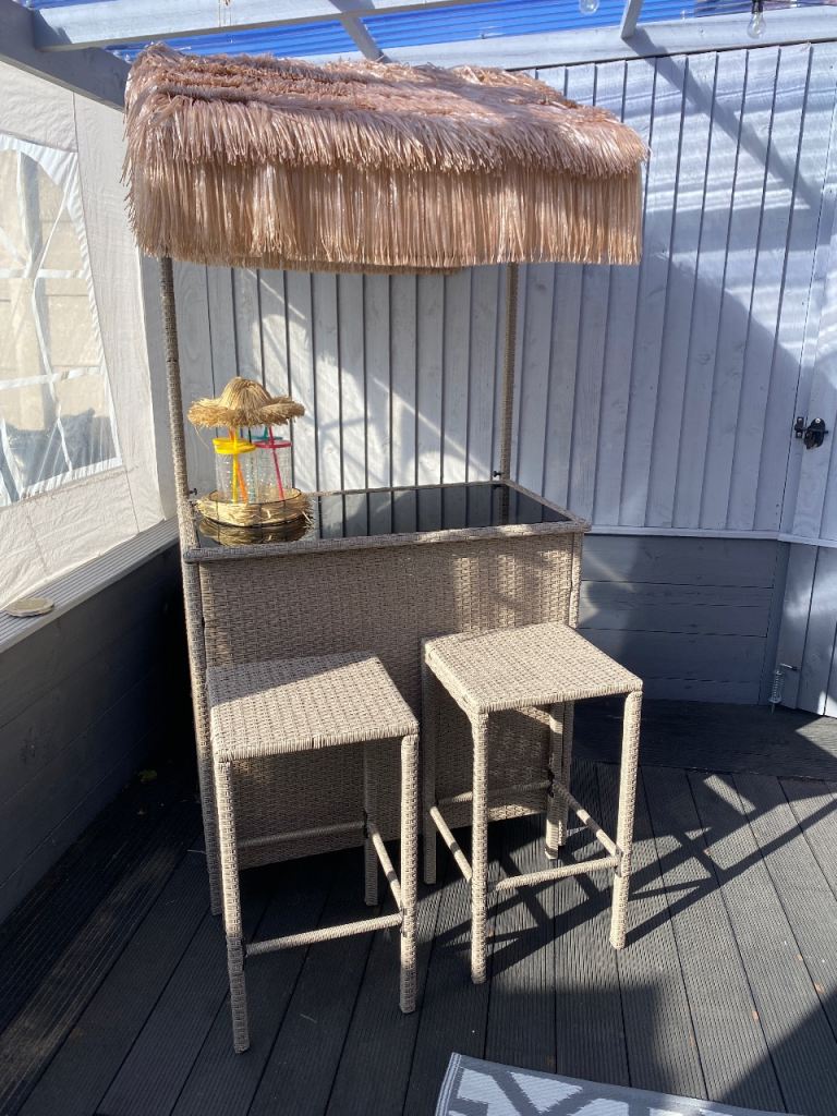 Robust construction: Featuring a powder-coated metal frame, this side table is weather-resistant and rust-proof.