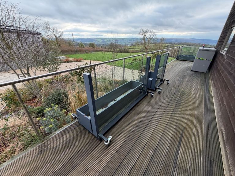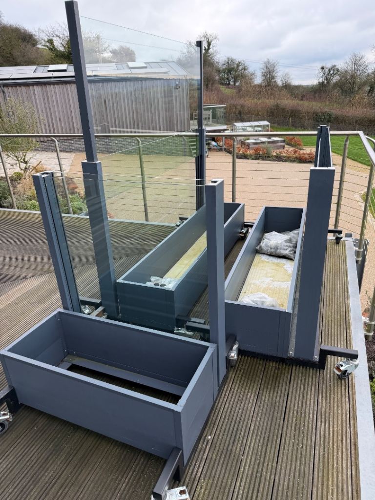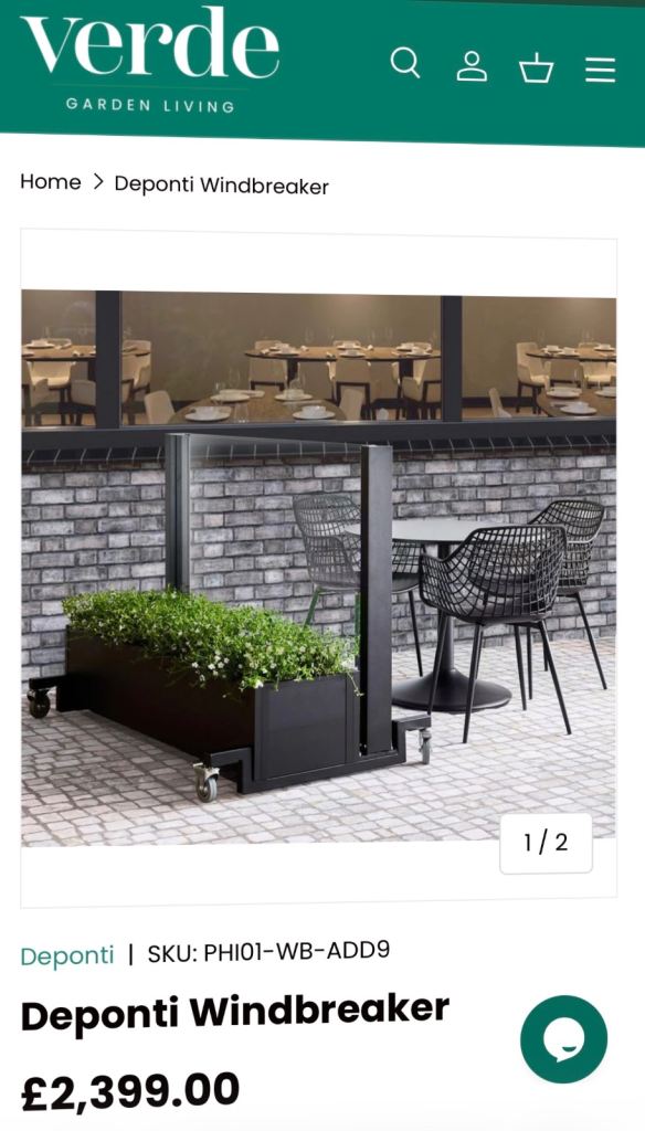Solid extendable windbreakers x4 large x2 medium , ideal for seating areas outdoors at cafes or in gardens .
