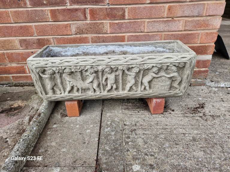 Genuine stone garden planter cherub design buyer collects from malvern link lovely condition