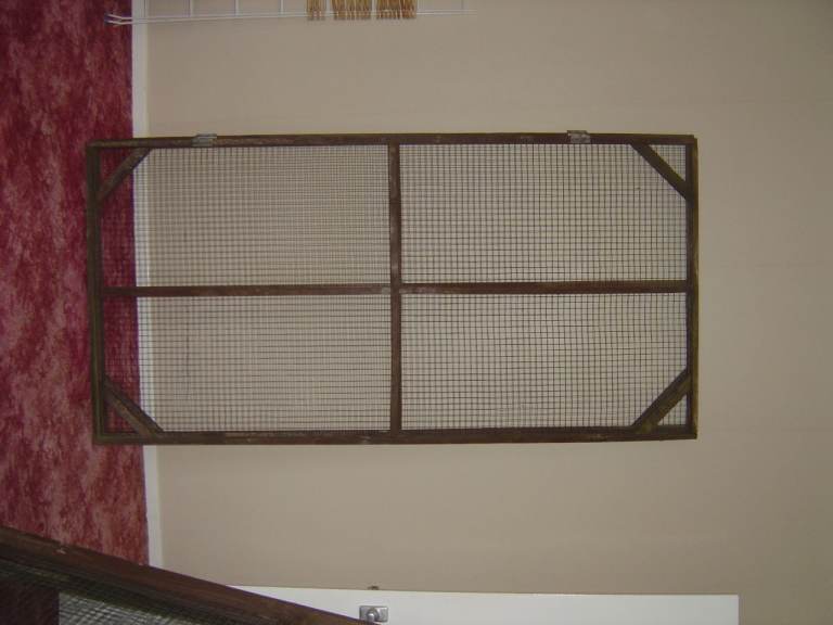 Sliding, removable tray for cleaning. Two roosting bars. Multiple access doors (side and roof) and a sliding door that can be operated externally to close up at night.