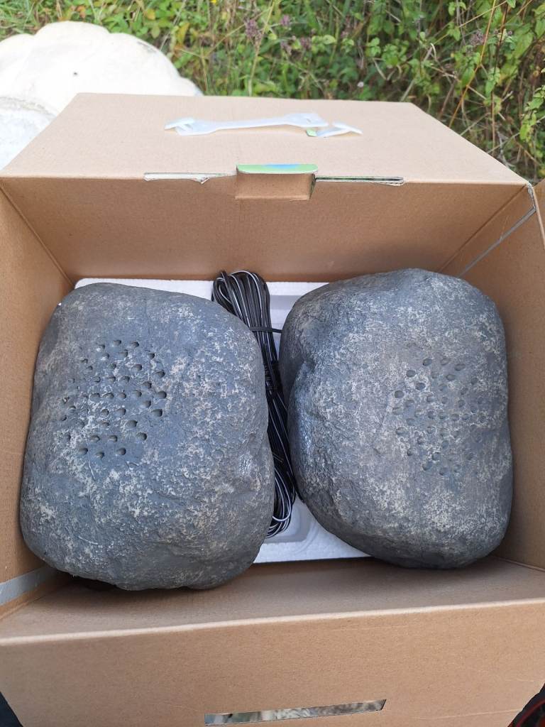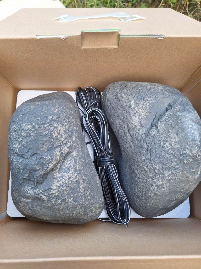 A boxed pair of unused rock garden speakers as new condition