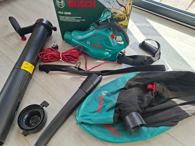 Bosch Electric Leaf Blower and Vacuum Universal Garden Tidy ALS 2500. Good condition as only used fpr one season until the aqpple tree was removed.