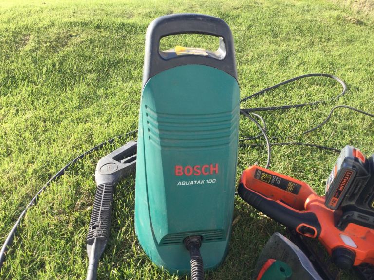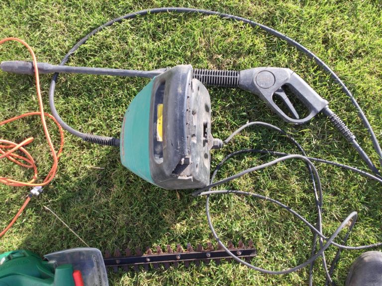 Some diy tools that have not been used for some time but all operable. Chainsaw may need replacement battery. Power washer, hedge trimmer and small chainsaw.