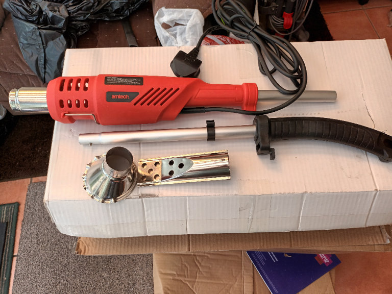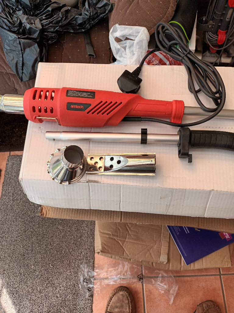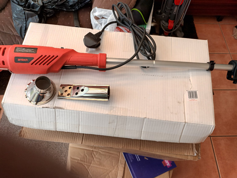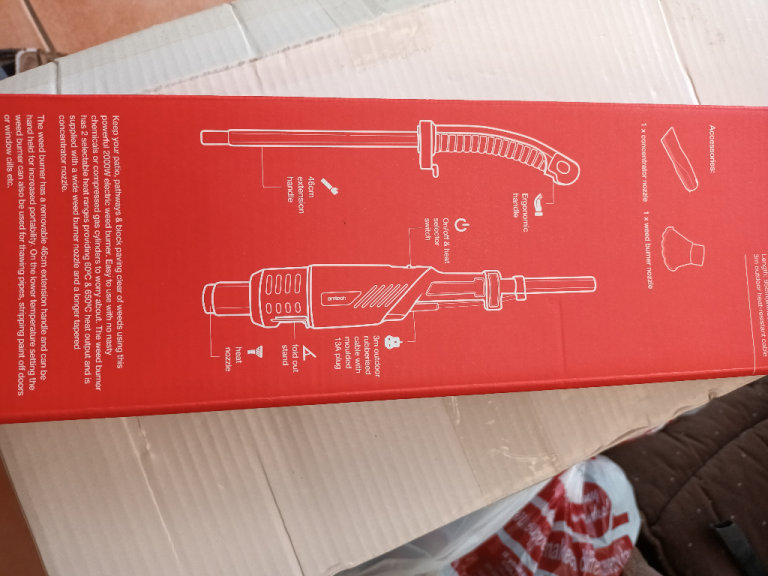Weed burning machine 240 v length 93cm just over 3ft 2inch can also be used handheld also works well for thawing pipes and paint stripping on doors and windows complete with 3pin plug boxed never used like new