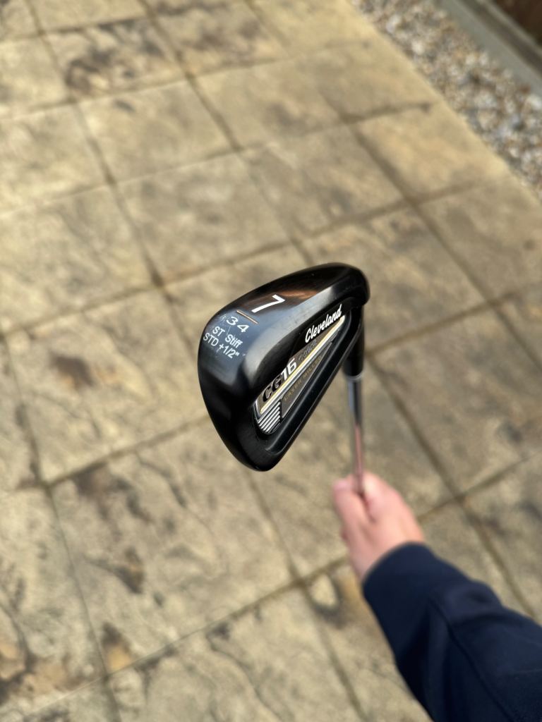 For sale is a Cleveland CG16 Tour 7 Iron, featuring the Laser Milled Black finish, a Dynamic Gold ST Stiff shaft, and the original Cleveland grip – a well-balanced iron ideal for confident ball strikers.