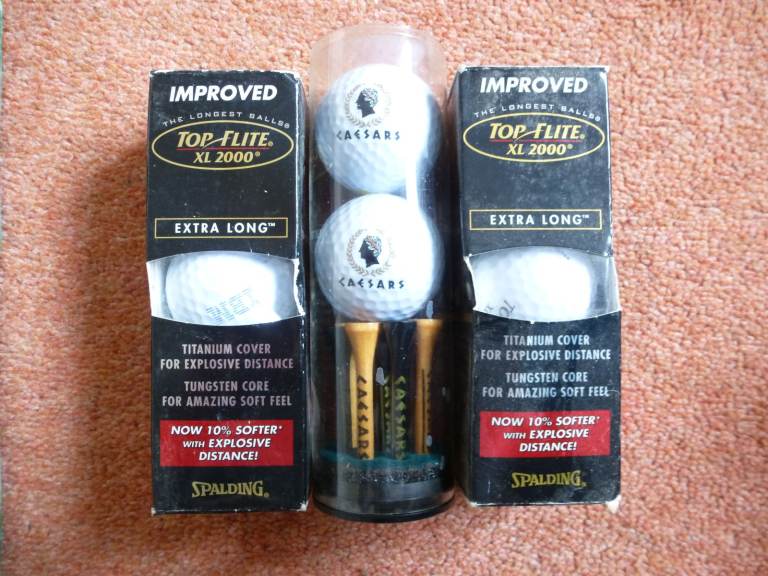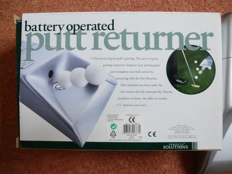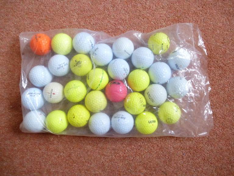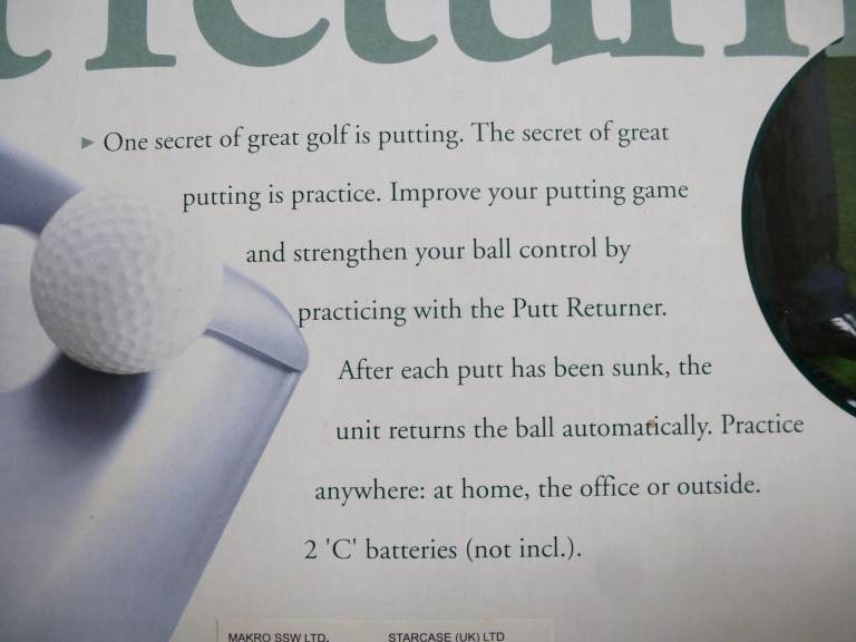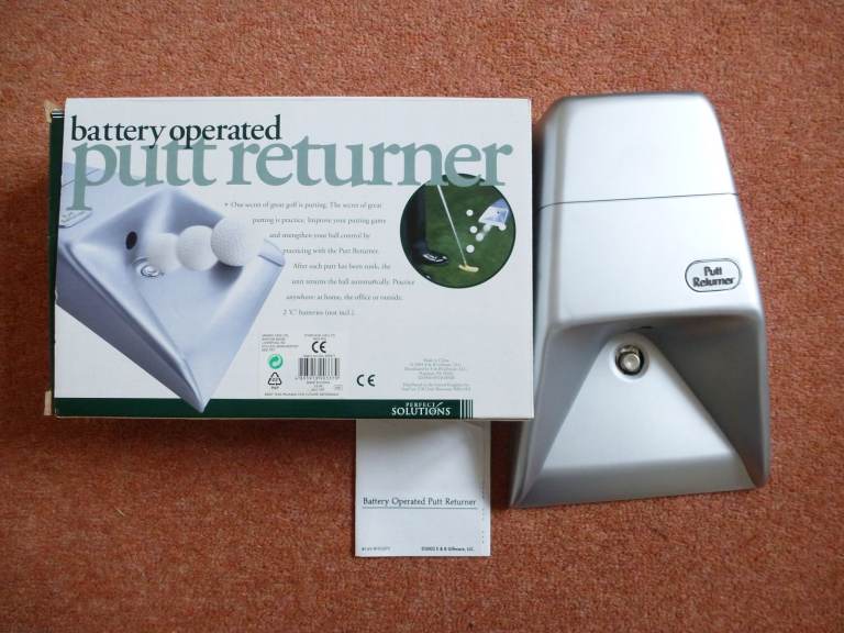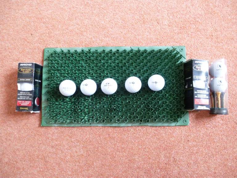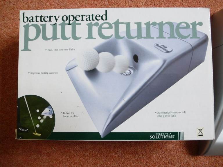 Golf ball, 8 still boxed, 20 in new condition, plus 30 used and unused. Putting mat in new condition. Boxed battery operated putt returner used twice, in excellent/like new condition.