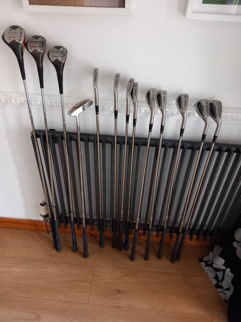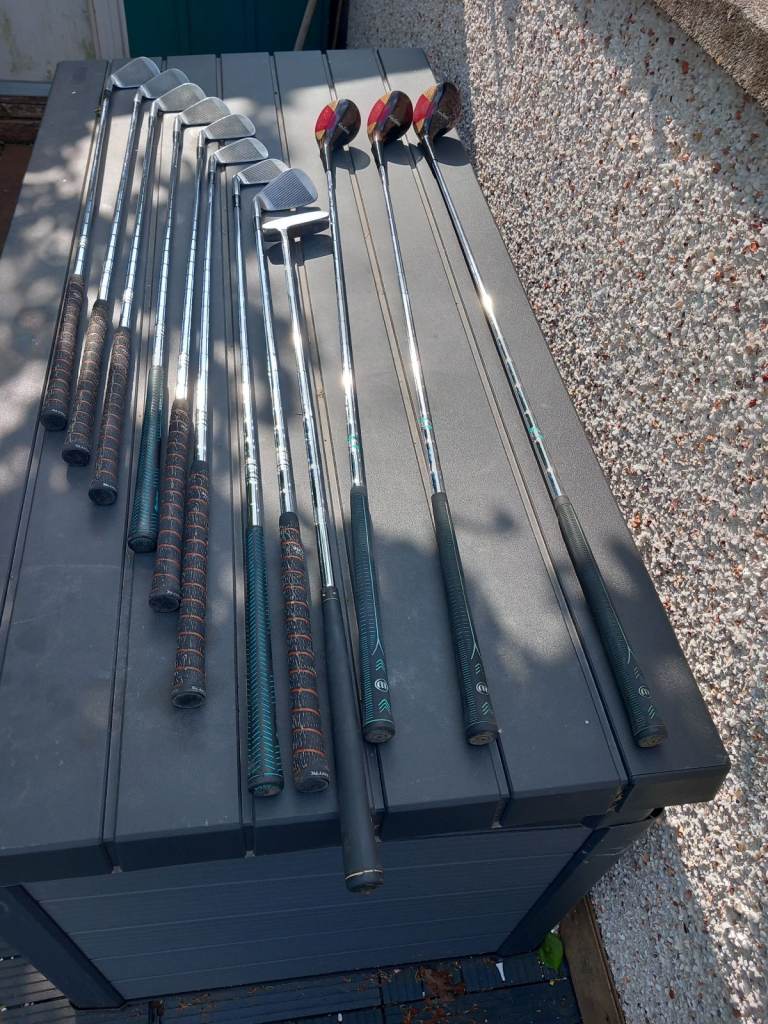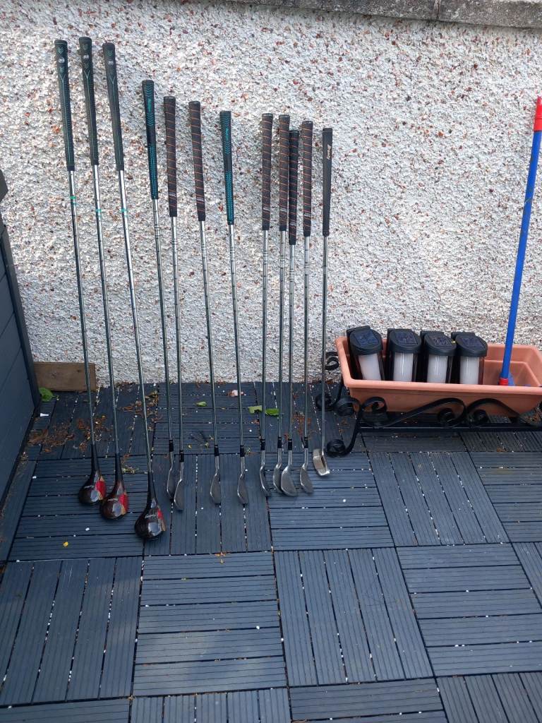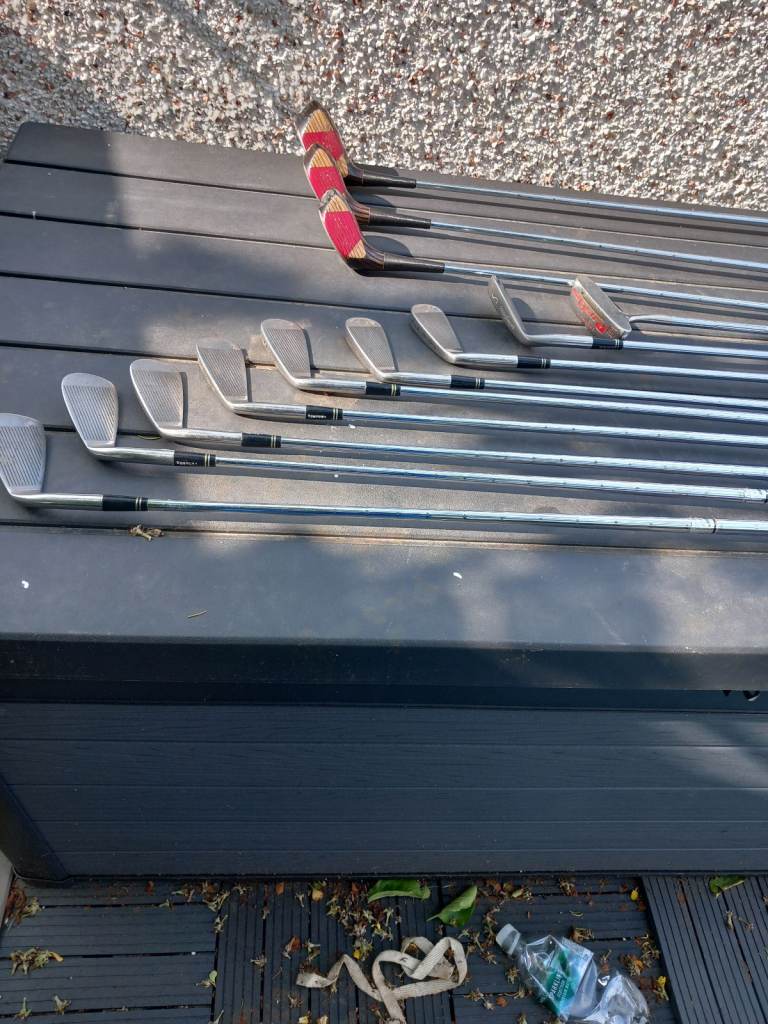 For sale set of Macgreror classic Jack Nicklaus irons consisting of 3.4.5.6.7.8.9.p.w&s.w. also persimmon driver 3wood&5wood & putter suit beginner excellent condition
