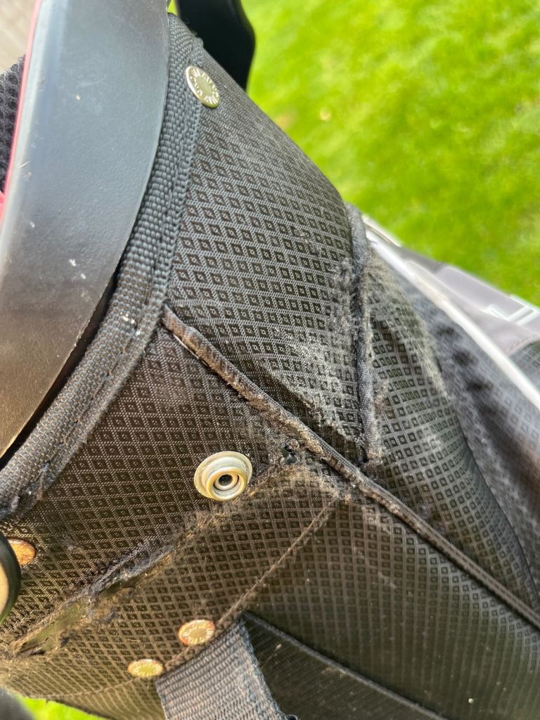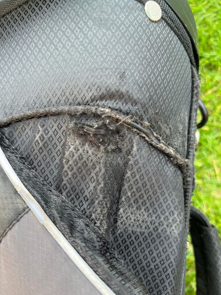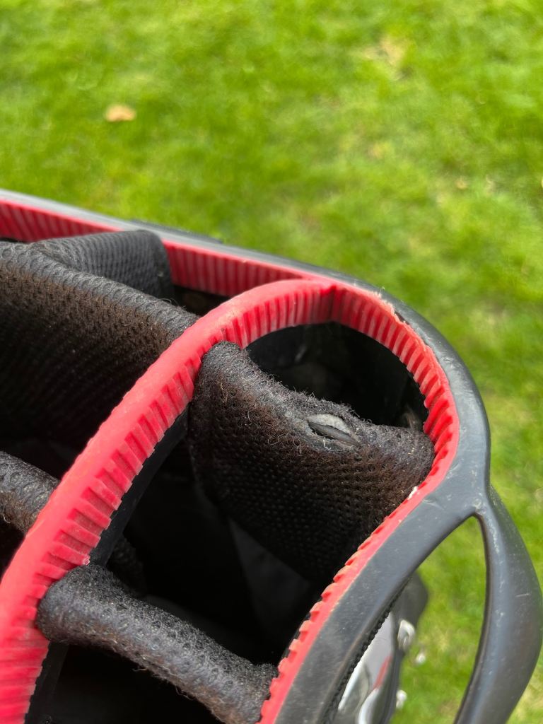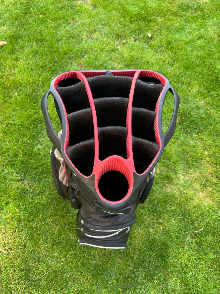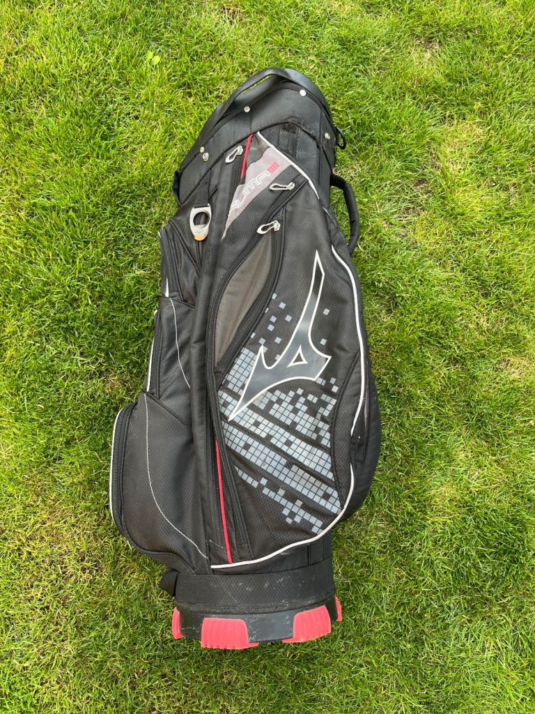 Good overall condition- does have some usage marks as expected! No carry strap as I used on golf trolley for the last year and misplaced this! Can find third party straps online if needed!