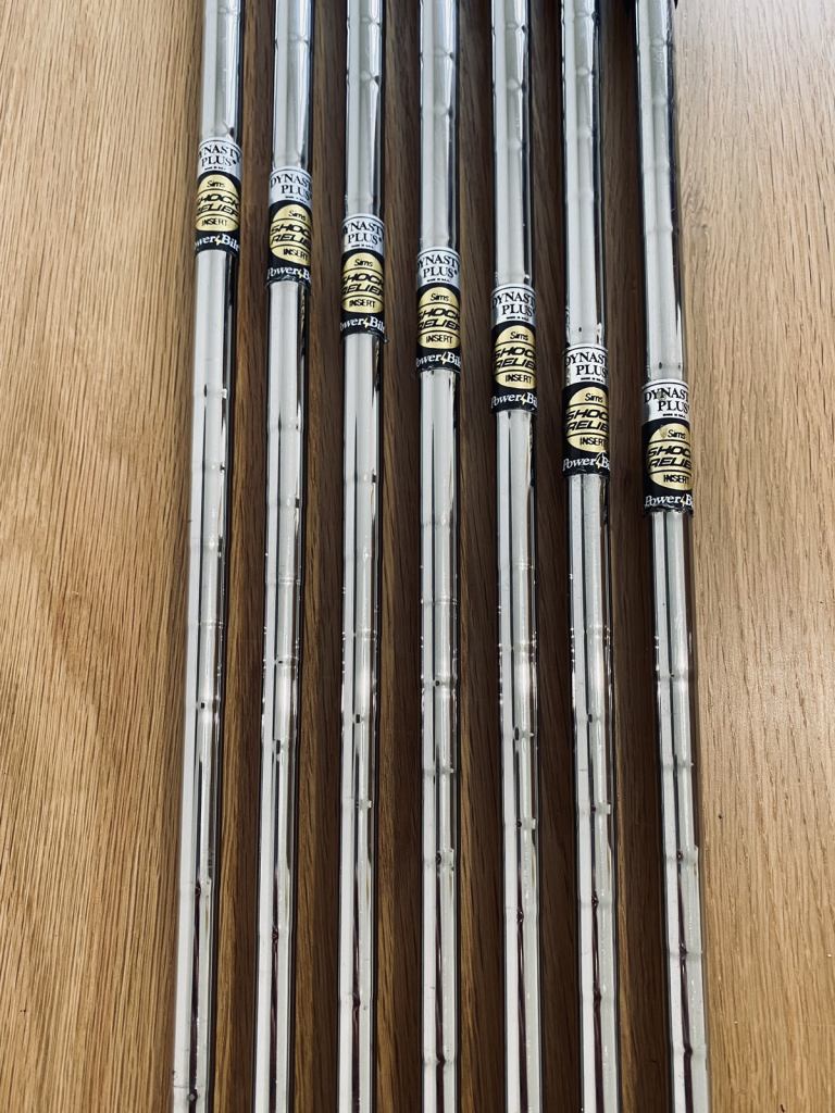 Shafts : Dynasty Plus (USA) tempered stepped steel each in excellent unmarked condition - Regular (R) Flex.