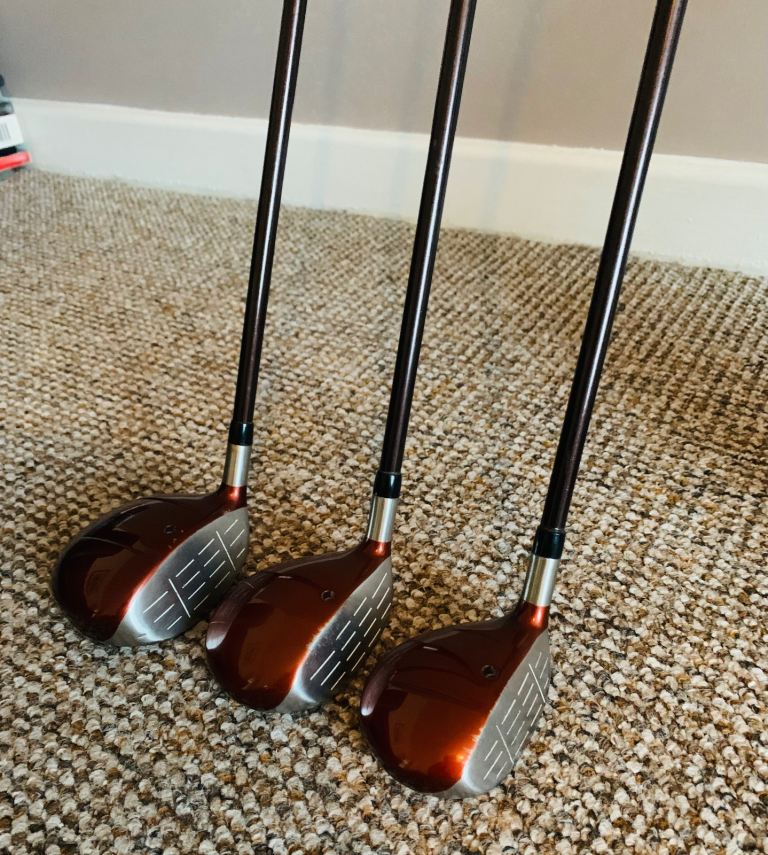 And a five wood that is same specs as the other two and also has an original head cover.