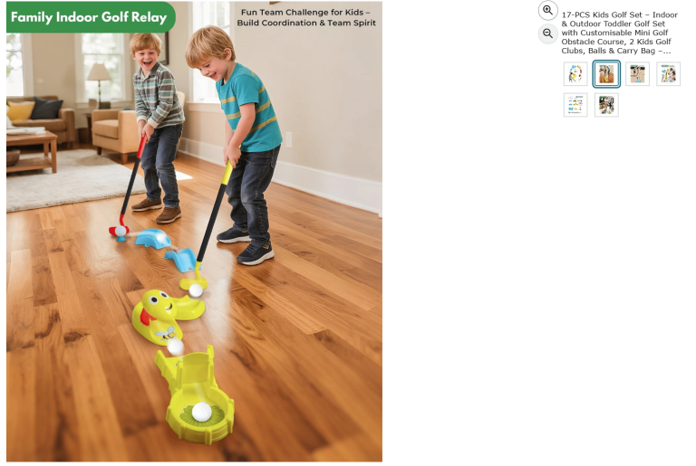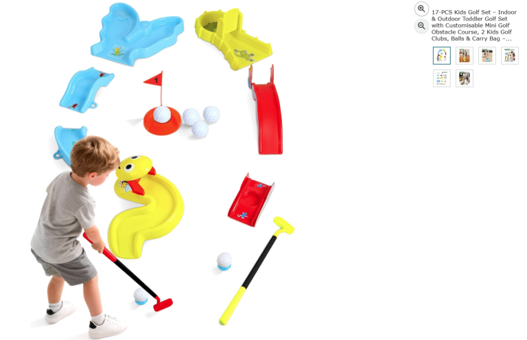 17-PCS Kids Golf Set – Indoor & Outdoor Toddler Golf Set with Customisable Mini Golf Obstacle Course, 2 Kids Golf Clubs, Balls & Carry Bag – Educational Gift for Boys & Girls Age 2-6
