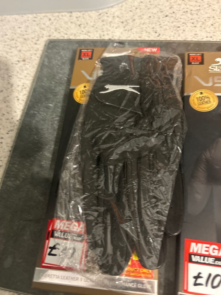 Slazenger Cabretta Leather Golf Gloves. Two Gloves in Black Size XL L/H. Still in wrapper & display sleeves.