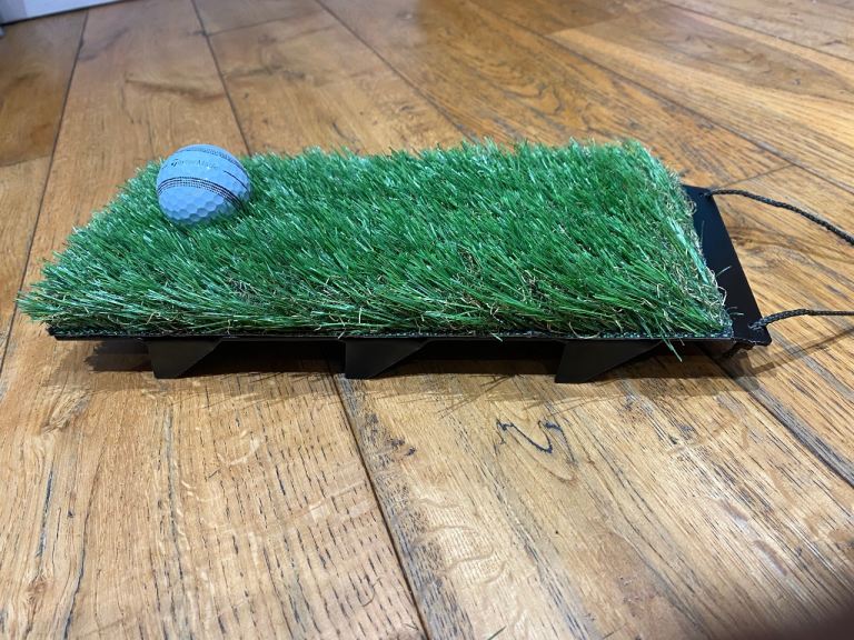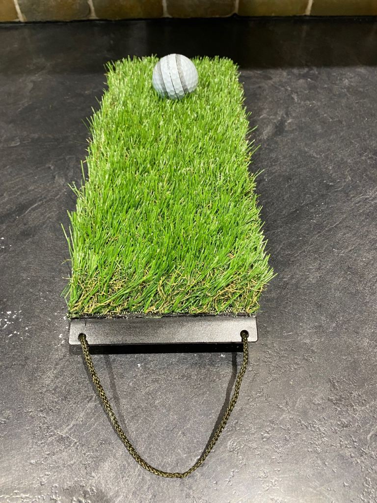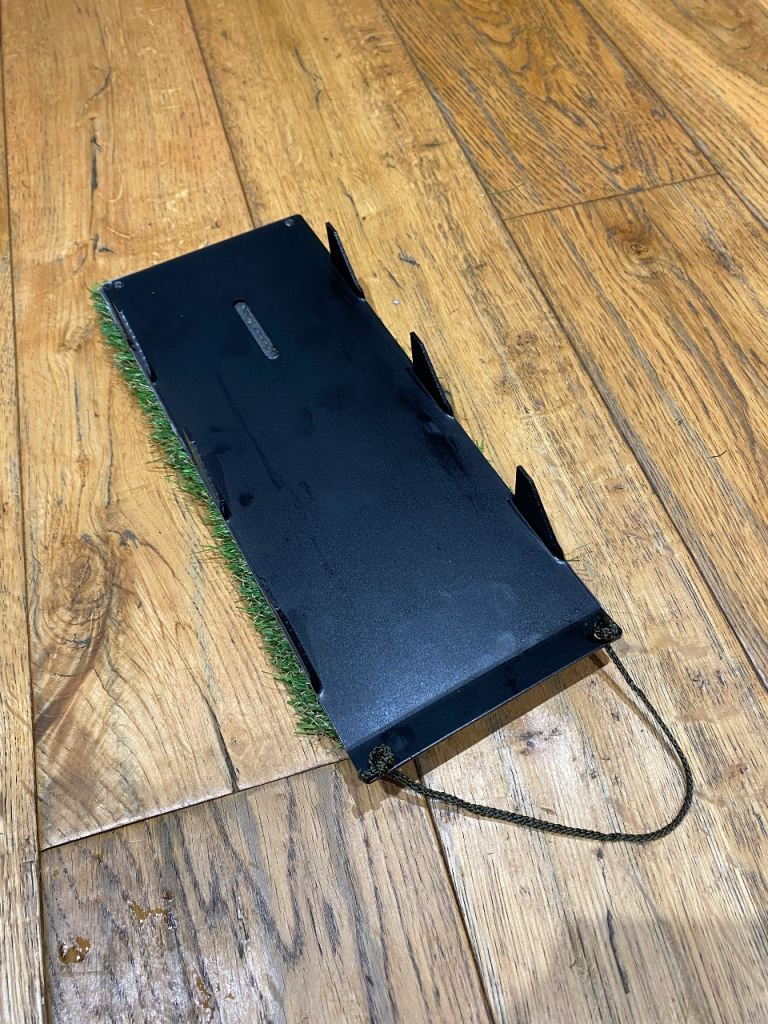 Powder coated aluminium base plate with mid pile Astro turf. Perfect lie every time in winter conditions