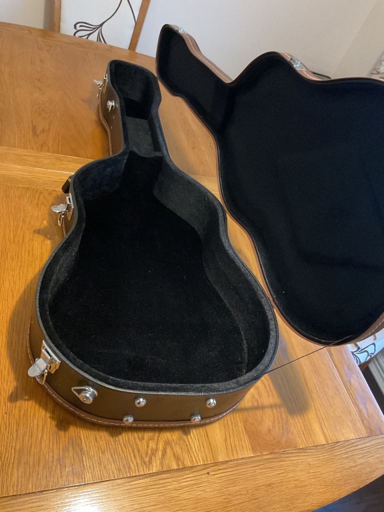 Hard travel case for an acoustic guitar, would suit medium bodied to dreadnought size. Has a few dings and scratches as shown.