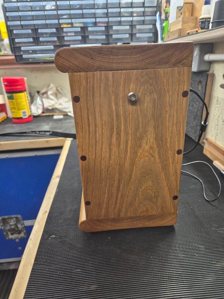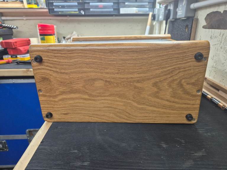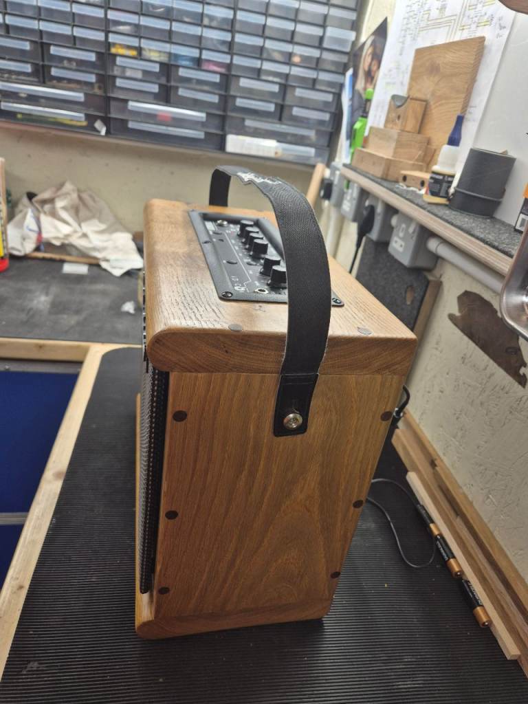 hand made custom oak cabinet, glued and screwed with walnut plugs. this is my first project of this kind, soon to do a blackstar beam and artisan 15w. made in the lockdown, beautifull amp sounds great. its rock solid. grab a unique piece of music gear. £70 worth of oak and my time to make it. £150