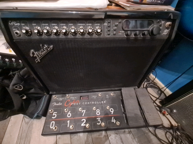 C. Giant M-20 guitar amp. Middle equalizer dial is missing.