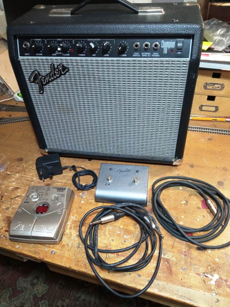 Fender Champion 110 guitar amp with Zoom 505 II and Fender footswitch.