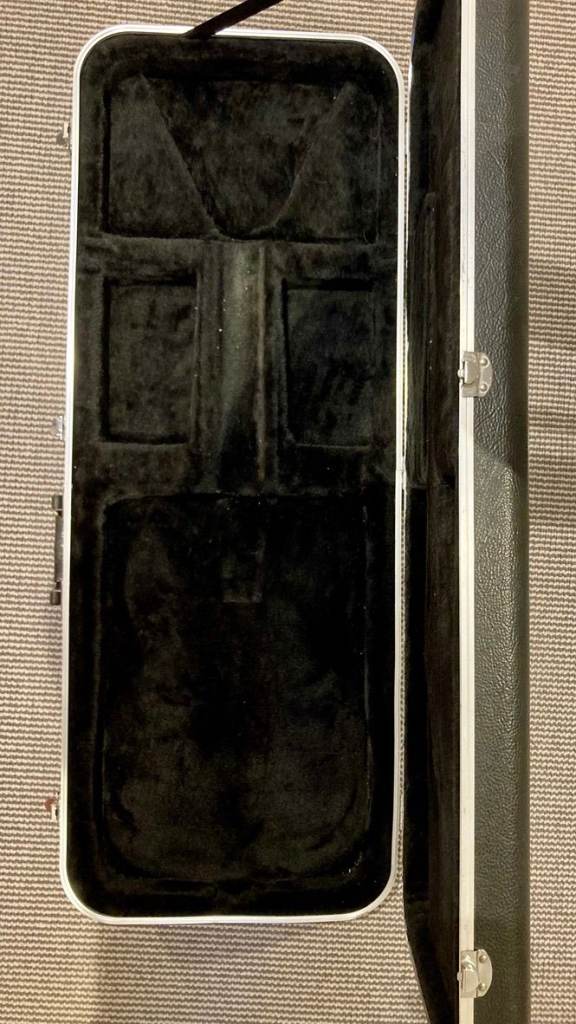 Guitar case made by Gator, comfortably accommodates either Fender of Gibson types. Hardshell case for great protection, internal neck support and black plush lining.
