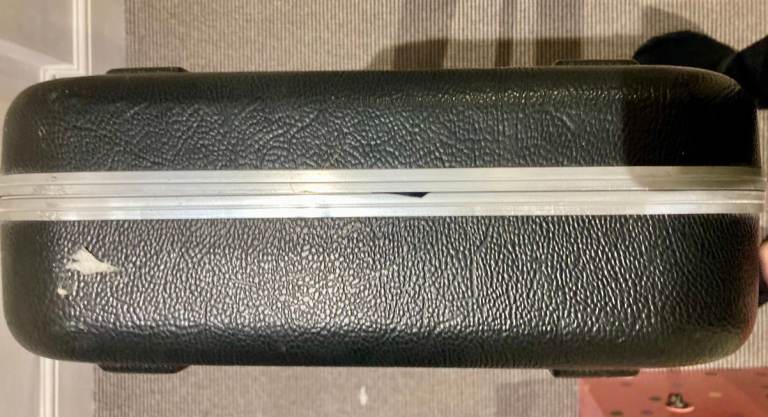 A few years old (with stickers!) but totally undamaged and in perfect condition, including the handle and latches.