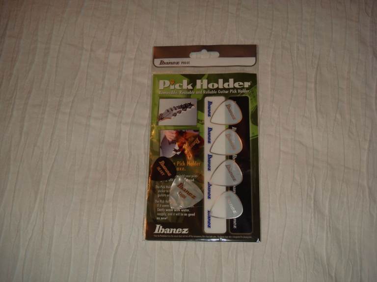 3) Ibanez pick holder and picks. Brand new and unopened.