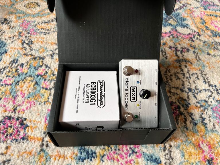 Two button loop pedal for sale. Unlimited overdubs. Comes in box with power supply