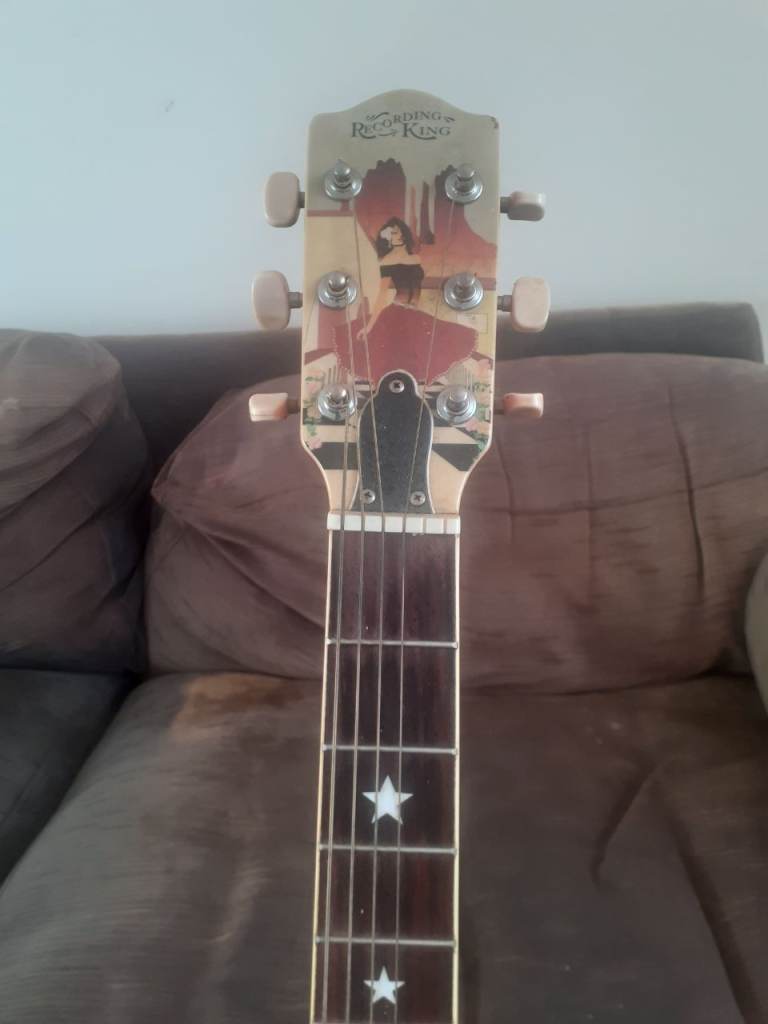 Posting for under a monthRecording King RG-100S Western Collectible Art Guitar – “The Senorita” Desig