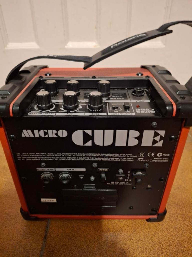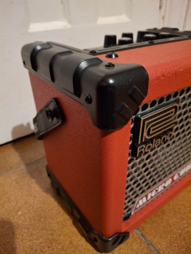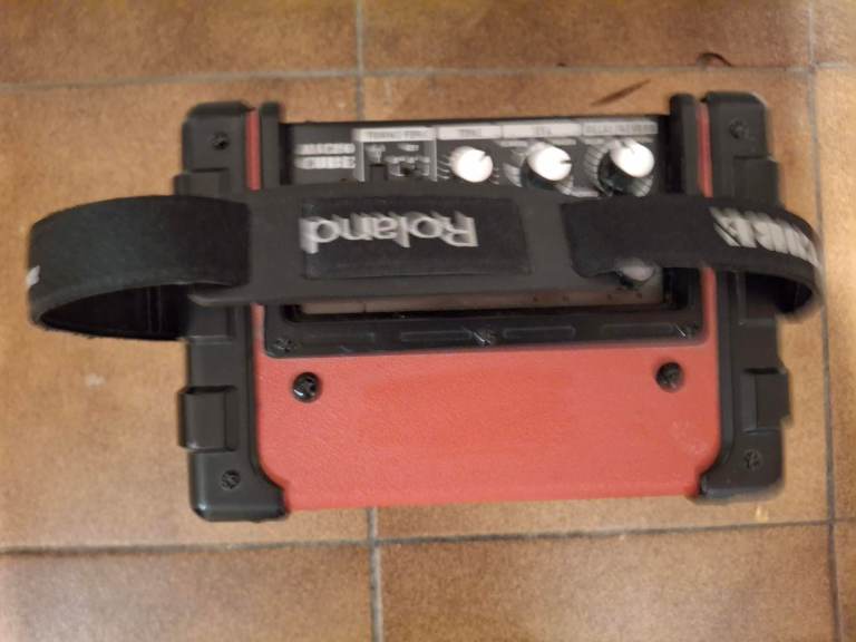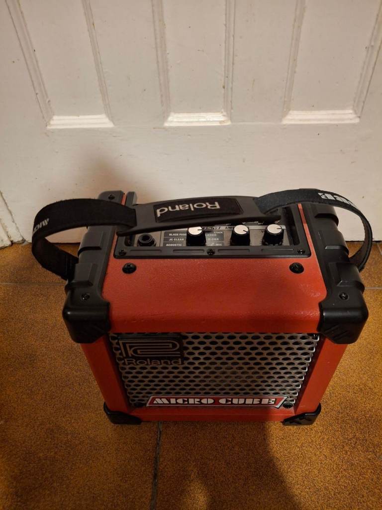 Roland Micro Cube guitar amp for sale (3 Watts), with AC power supply. Limited Edition Red Version, with carrying strap. Now discontinued. Runs on batteries or mains supply. £120 ono.