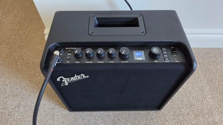 Fender Mustang LT25 25-watt combo amplifier. Single 8" speaker, 20 different amp models from classic Fenders through Marshalls, Vox, Hiwatt etc. and on to high gain examples such as EVH, 25 built-in effects, 60 preset memory slots for storing your own tones, and a load of pre-loaded tone examples. Sturdy wooden cabinet, simple but effective user interface with colour display, stereo headphone jack for silent practice, aux input for playing along, USB interface for recording, firmware updates and connection to the excellent Fender Tone desktop app, which can really unlock its huge potential. Ideal for a beginner or anyone else who wants a highly configurable, compact flexible amp loaded with almost unlimited tone capability. As new condition. Would need to be collected.