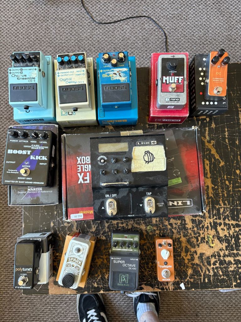 Various pedals - audio interface - midi keyboard