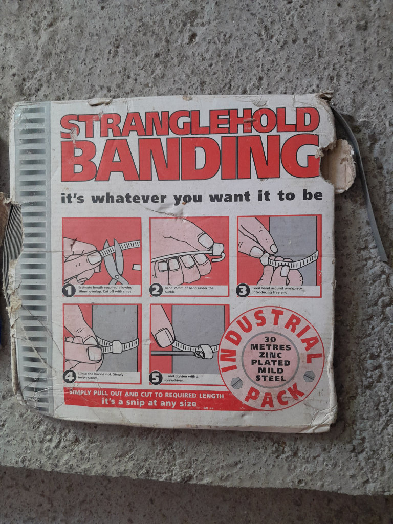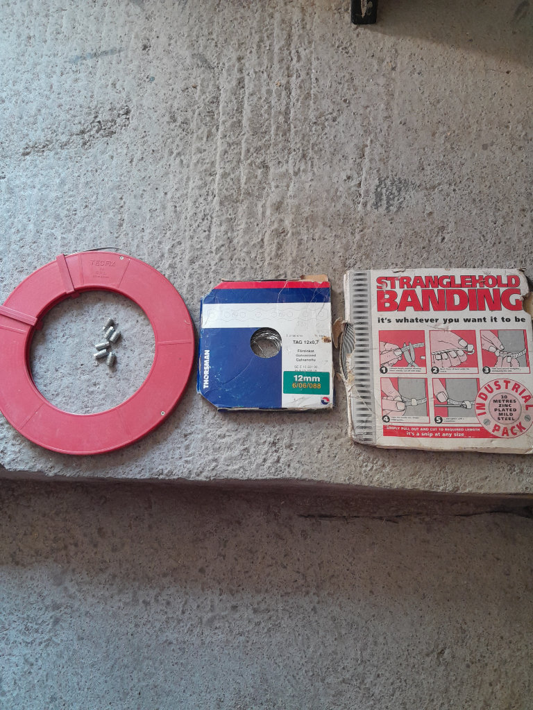 Three full and nearly full rolls of assorted strangle banding. Comes with six fittings