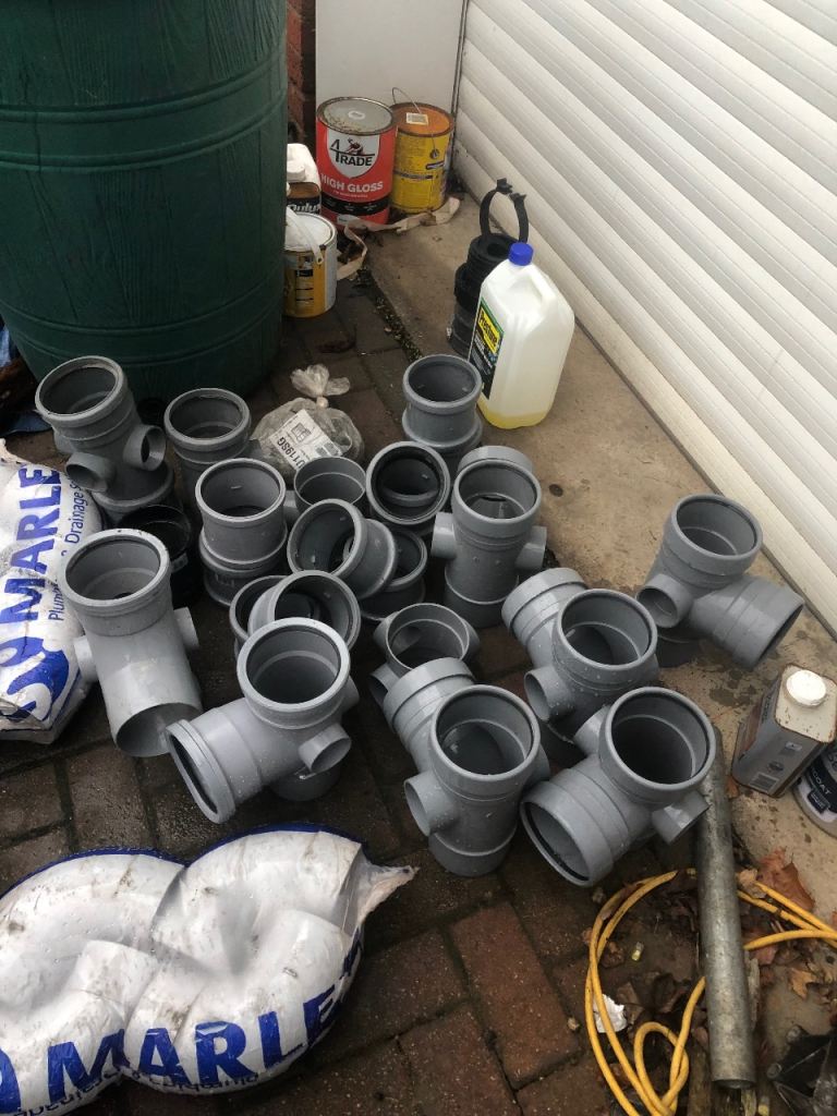 Tub full of 4 inch grey push fit and solvent weld fittings. Also 1 tub of grey gutter fittings. 25 for all the 4 inch and a tenner for the gutter fittings. Ideal for internal stack work. Collection from Glenfield Leicester. Text only please thanks