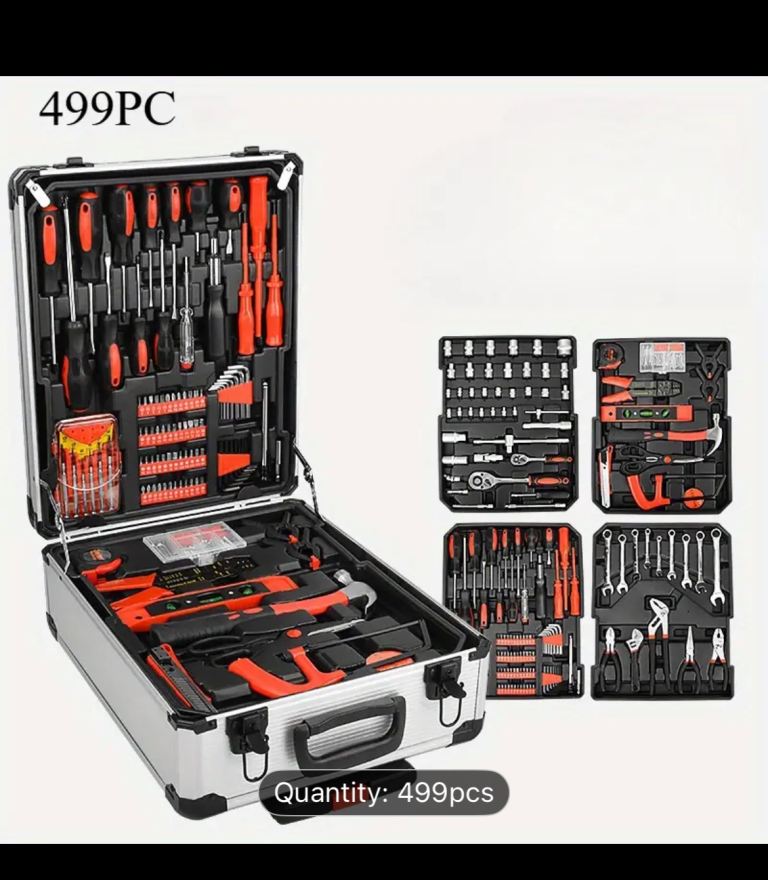 Be ready for any repair or maintenance task with this 499-piece Complete Mechanic Tool Set, perfectly organized in a durable, portable suitcase. Whether you’re working on your car, fixing things around the house, or handling electrical and mechanical repairs, this all-in-one toolkit has the precision and power you need.