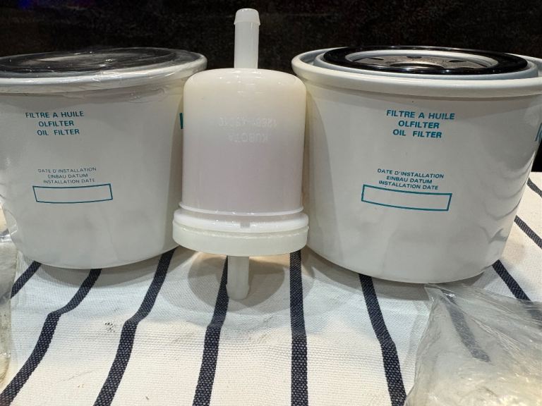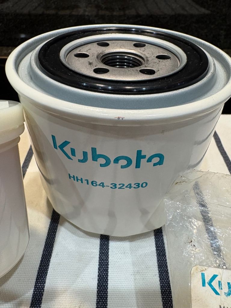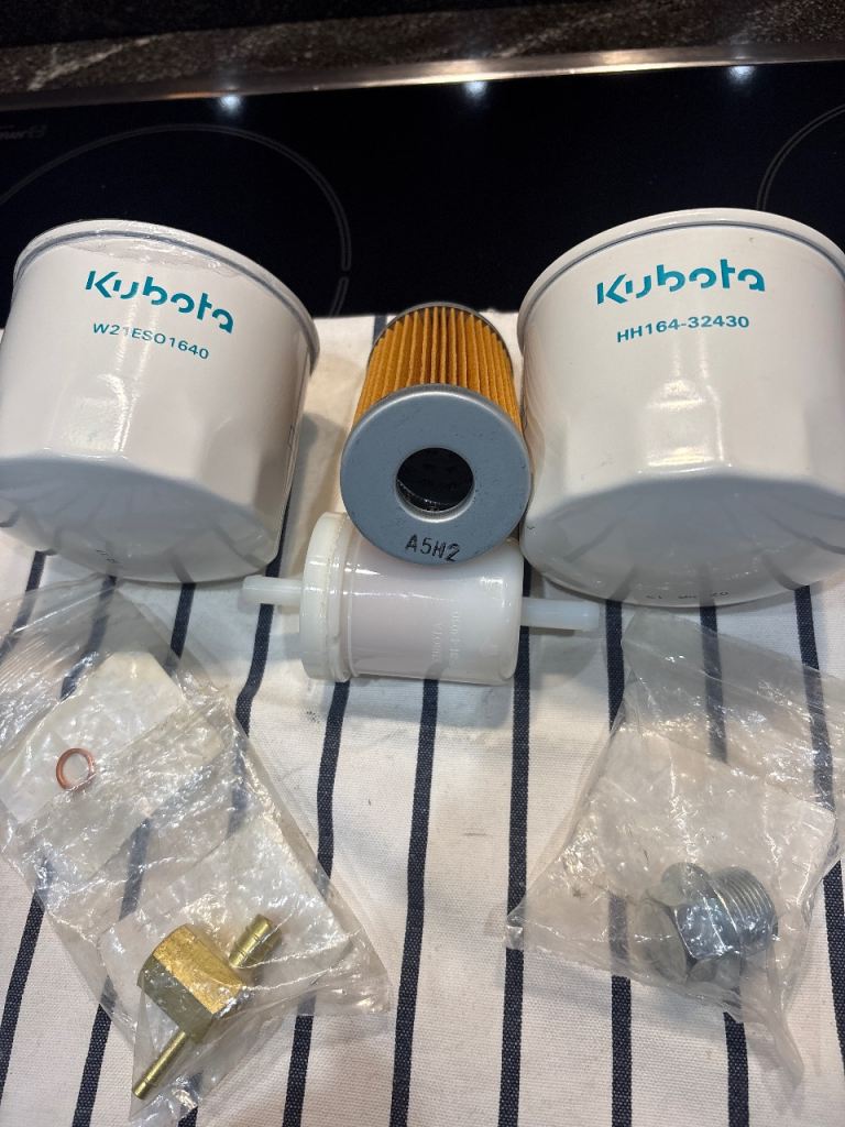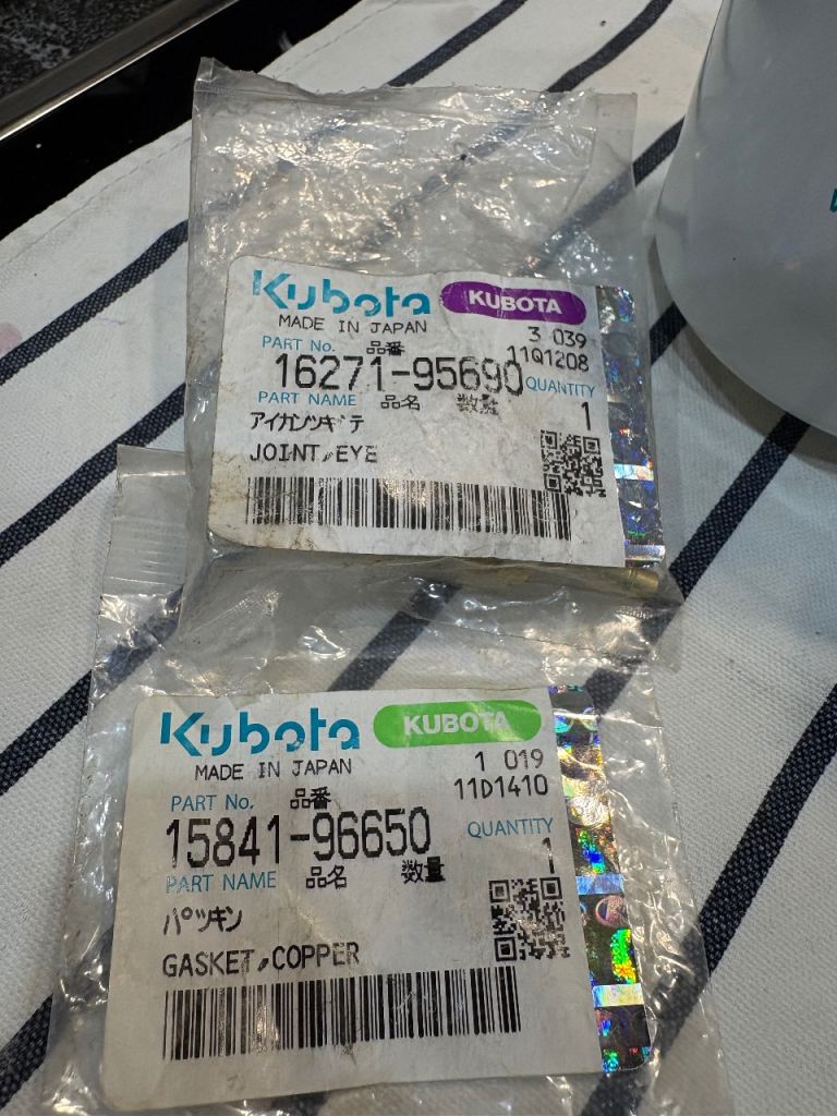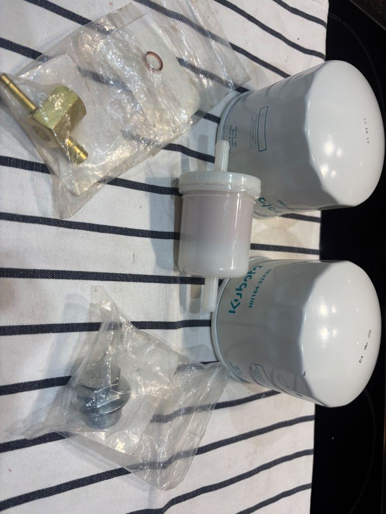 Selling these 6 items. 5 have all the Kubota details on them, the orangey one was in a Kubota box, but has no details on the box that matches the A5H2 on the filter, my husband was terrible for taking things out of boxes and not putting them back in the proper boxes, so this might be one of them. But if you buy this item on a regular basis you should know what this item is. The clear one has Kubota and the numbers 12581 and 43010. I’ve tried to photograph the numbers,