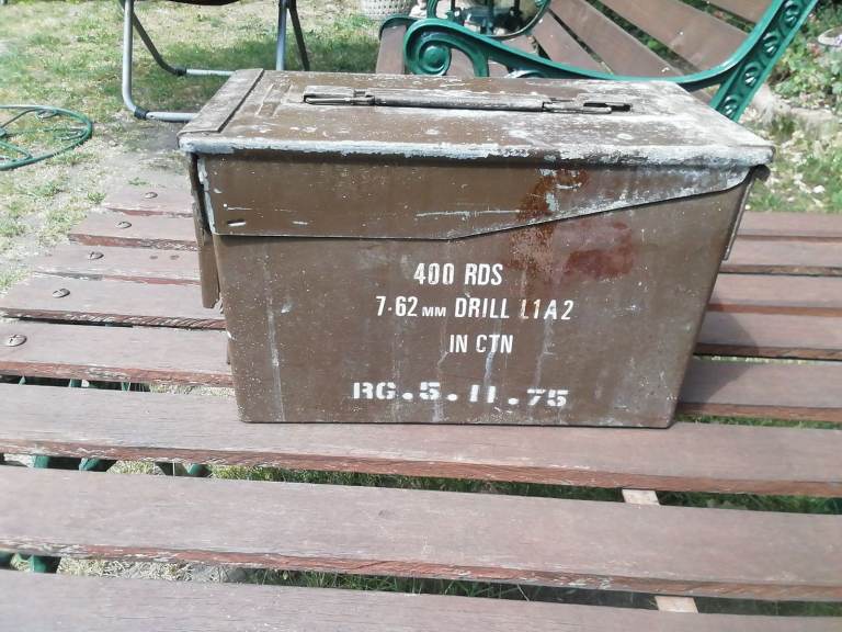 Small Ammunition box, very good condition, 1ft long x 6in wide x 8in high, just right for your old military vehicle, collection only Hersham