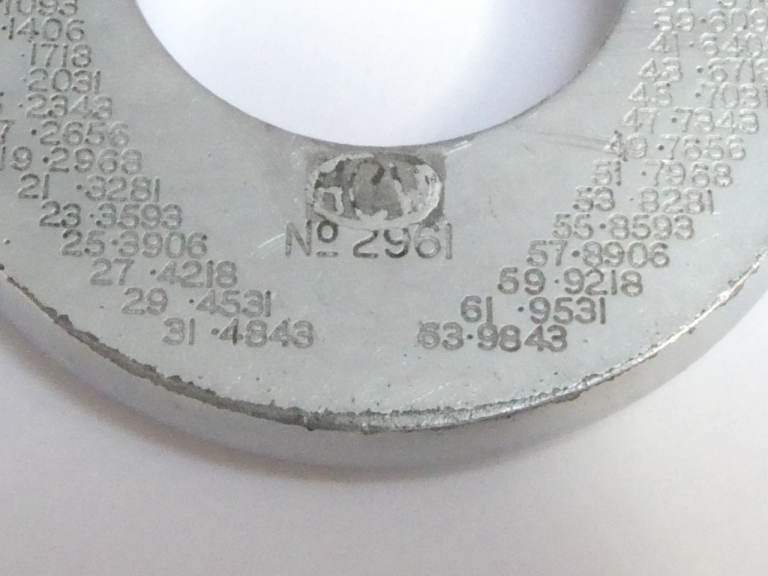 The knurled thimble has a small amount of engineering 'debris' attached (photograph 3) which I assume could be cleaned off or ignored and there is a name engraved into the U-frame (photograph 4).